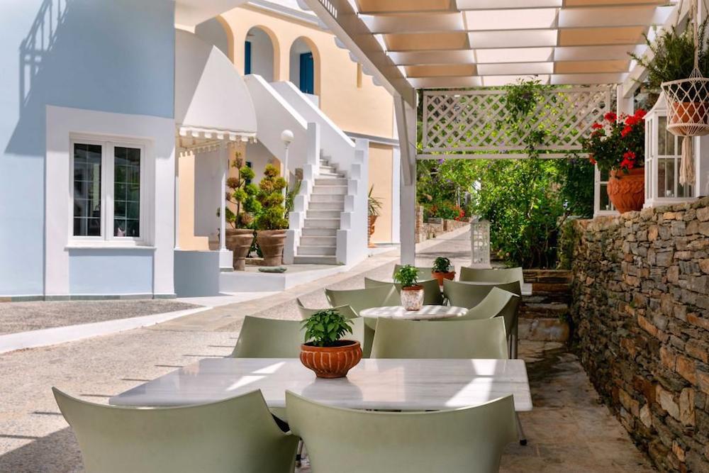 Aneroussa Hotel in Andros stands out for its beautiful natural surroundings and its romantic, serene atmosphere. Its unique architecture combines the elegance of the island’s neoclassical mansions with the simplicity of Cycladic design, resulting in an architectural jewel nestled in the verdant landscape of Andros, your very own private paradise.