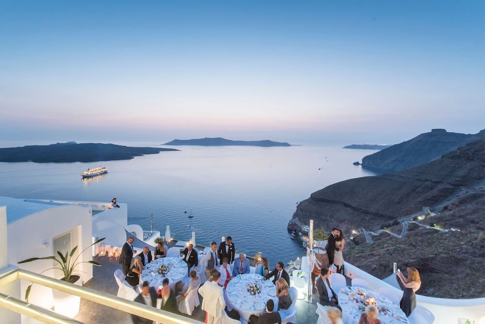 Savor all the best of Fira from Athina Luxury Suites. Just steps away from the delectable restaurants and the cosmopolitan lifestyle of Santorini, this boutique hotel is the place to experience Greek culture. Yet, tucked away in a quiet, picturesque neighborhood, guests can enjoy in privacy and tranquillity. Every suite offers dramatic views of the volcano, the glittering Aegean Sea and stunning sunsets. This venue is also an idyllic wedding venue for discerning couples who are dreaming of the renowned Santorini experience. With extensive wedding services and a passion for weddings, the experienced staff crafts a unique experience.