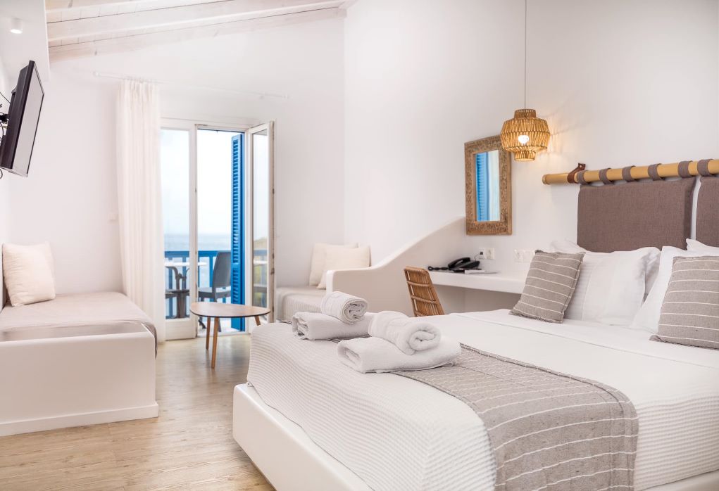 Blue Bay Resort Village in Andros is your perfect honeymoon getaway. Stretched out on a serene hillside overlooking the Aegean Sea this venue offers Cycladic authenticity. Designed exclusively for couples seeking privacy, tranquillity and romance, you can enjoy an unforgettable honeymoon at this exceptional seaside retreat while you discover Andros island. The resort offers a refined selection of accommodations, a wide variety of Suites, with comfort, privacy, and luxury. All are thoughtfully designed for comfort and intimacy, where couples can unwind and enjoy their stay. Relax by the poolside, enjoy cocktails at sunsets and savour the Mediterranean cuisine. As the sun rises over the sea, wake up to leisurely breakfasts with a sea breeze. Every space reflects Cycladic elegance and island aesthetics that elevate the honeymoon experience. Here, time seems to slow down, inviting you to relax, unwind, and enjoy each other and your honeymoon. The serenity, warm hospitality and spectacular sea horizon create an irresistible setting. Blue Bay Resort Village: Enjoy pure honeymoon bliss in Andros.Where your loves grow deeper, and memories last forever