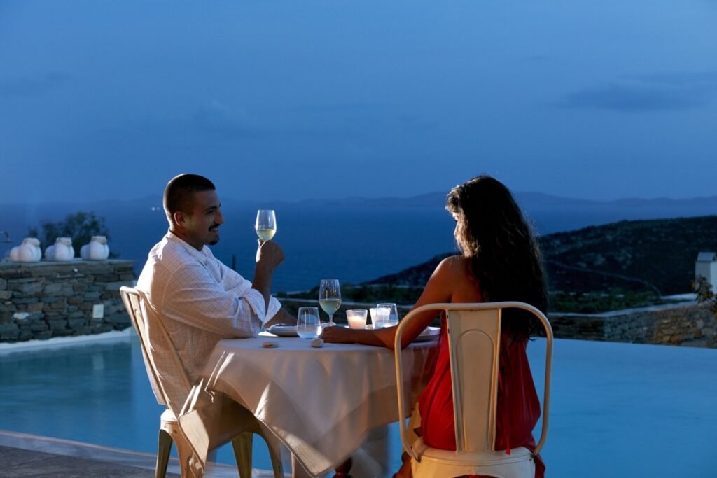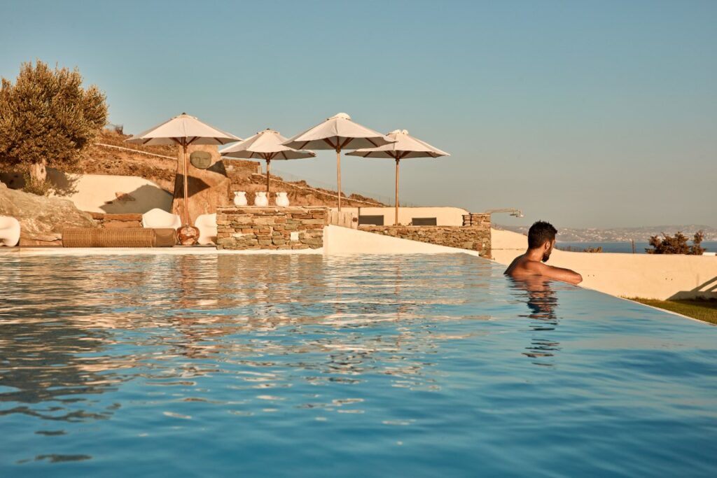 With warm hospitality and genuine care, Diles & Rinies Villas in Tinos offer a luxurious and memorable stay filled with relaxation and unique experiences. Amidst tranquil surroundings with breathtaking views of the Aegean Sea, guests can unwind and savor every moment of serenity and beauty. Tinos is famed for its rich culture, natural wonders, and vibrant activities, making the villas the perfect destination for an unforgettable wedding or honeymoon. The estate accommodates up to 60 guests across 24 elegant rooms and hosts events for up to 200 people, ideal for intimate celebrations or grand gatherings. Couples and guests enjoy discreet service, privacy, and the exclusive “MOONRISE” Pool Bar by the main swimming pool. Beyond accommodation, Diles & Rinies offers access to expert planners, caterers, and entertainers who tailor every detail to create your dream wedding or honeymoon experience.