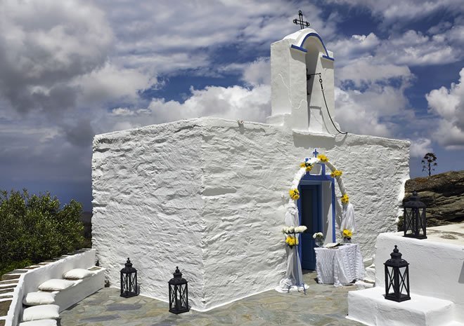 Weddings take place at Villa Lefkothea, where the charming chapel of Taxiarches sits gracefully on the villa’s veranda. The villa’s multi-level terraces provide an idyllic scenery for an elegant reception, complete with heartfelt dining, dancing, and music beneath the stars.