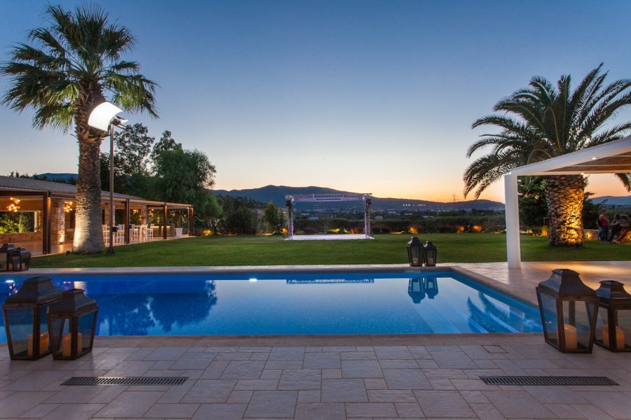The estate’s charm lies in its seamless blend of natural beauty and refined elegance. Olive groves, vibrant gardens, and expansive vineyard views create a romantic scenery for ceremonies under the open sky. As dusk falls, the estate transforms into a dreamlike, glamorous setting for receptions beneath the stars, while its elegant indoor halls welcome guests into a sophisticated atmosphere for banquets and more intimate celebrations.