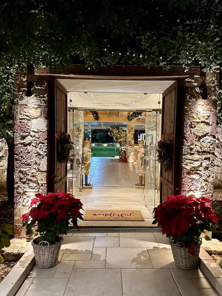 The estate’s charm lies in its seamless blend of natural beauty and refined elegance. Olive groves, vibrant gardens, and expansive vineyard views create a romantic scenery for ceremonies under the open sky. As dusk falls, the estate transforms into a dreamlike, glamorous setting for receptions beneath the stars, while its elegant indoor halls welcome guests into a sophisticated atmosphere for banquets and more intimate celebrations.