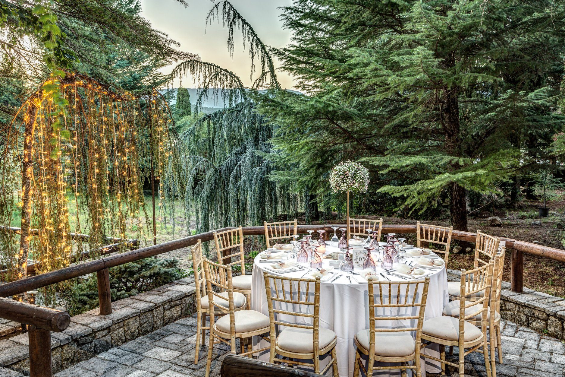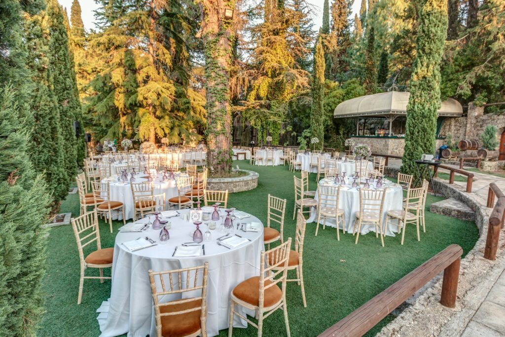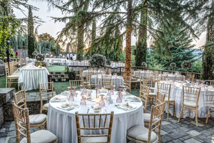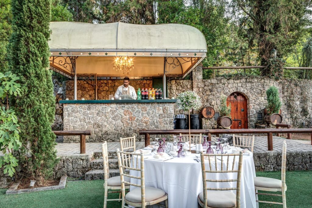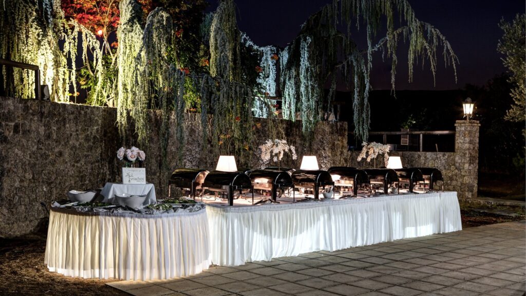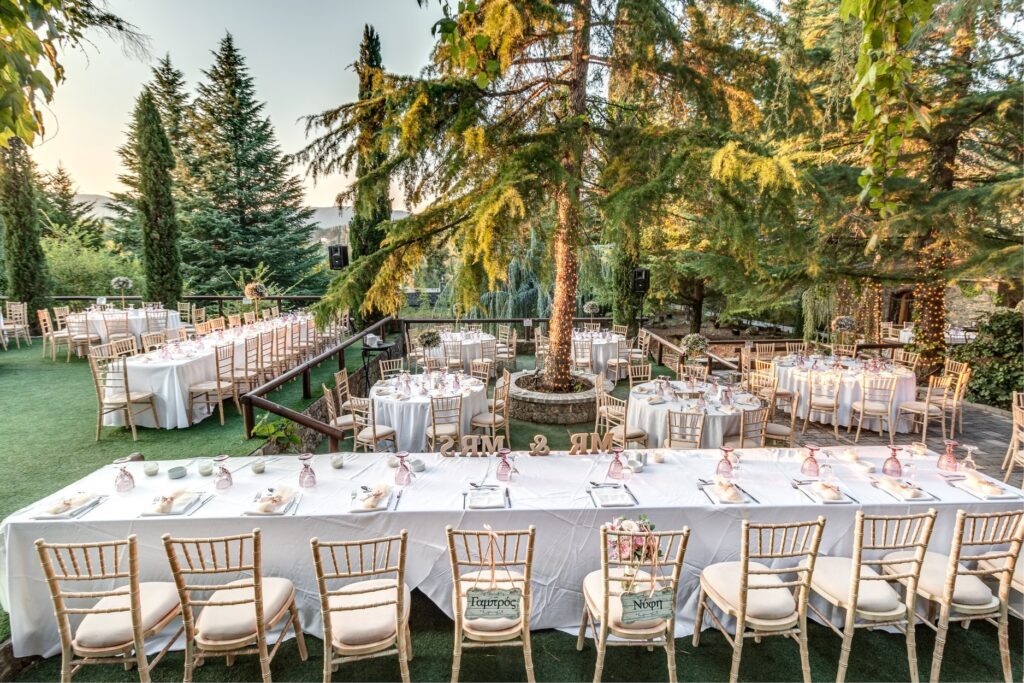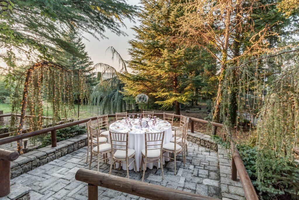 Just 10 minutes away from Corfu Town, stands Valsami Estate a verdant wonder of natural beauty. With rare trees and exotic foliage imported from Italy and Thailand, this incredible estate is an enchanting escape for the senses. A celebration of nature, this venue is perfect forthe most romantic and unforgettable weddings. Cascading waters and towering trees create a sanctuary where nature and luxury come together in perfect harmony. Stone pathways, wooden accents add to the estate’s stunning beauty. Fully organized, the estate is designed to host up to 400 guests. A charming stone-built suite for couples is there for moments of rest or to refresh during the celebration. A seasoned network of top-tier professionals will work with you to make your wedding memorable. Its private, on-site parking accomodates guests with a capacity of 500 vehicles. Valsami estate has it all. Corfu’s lush natural beauty, elegance, and charm, made for a one-of-a-kind celebration experience.