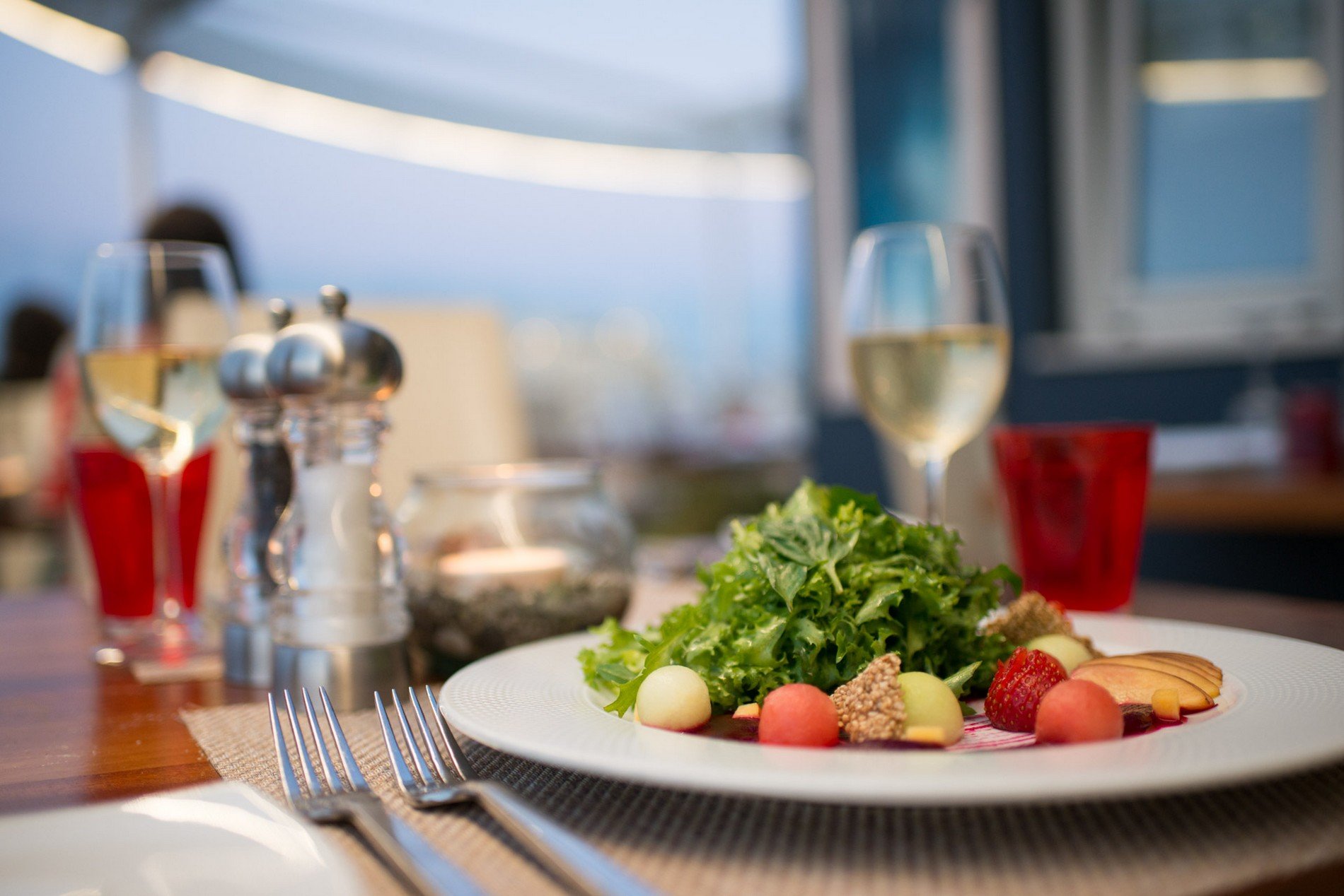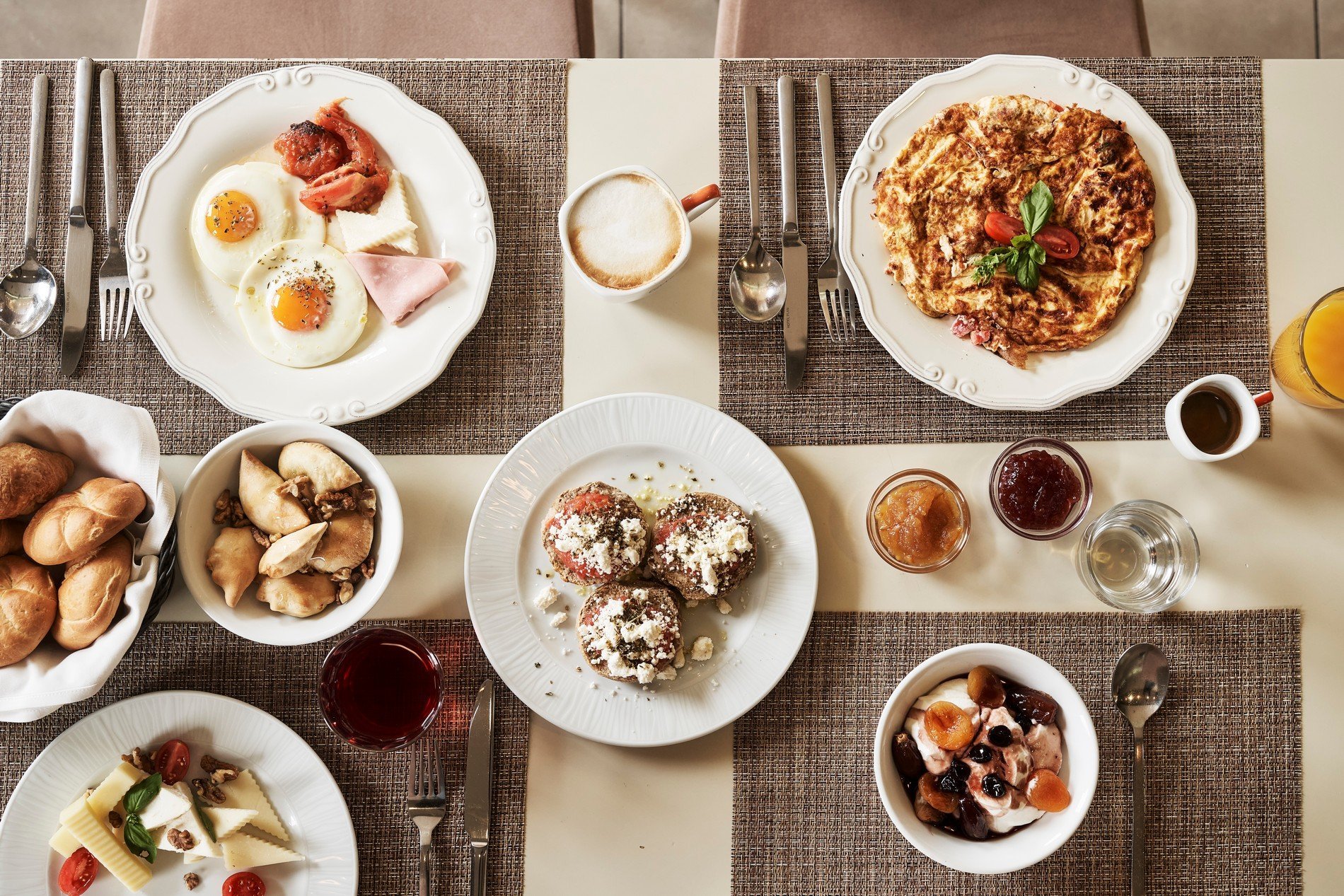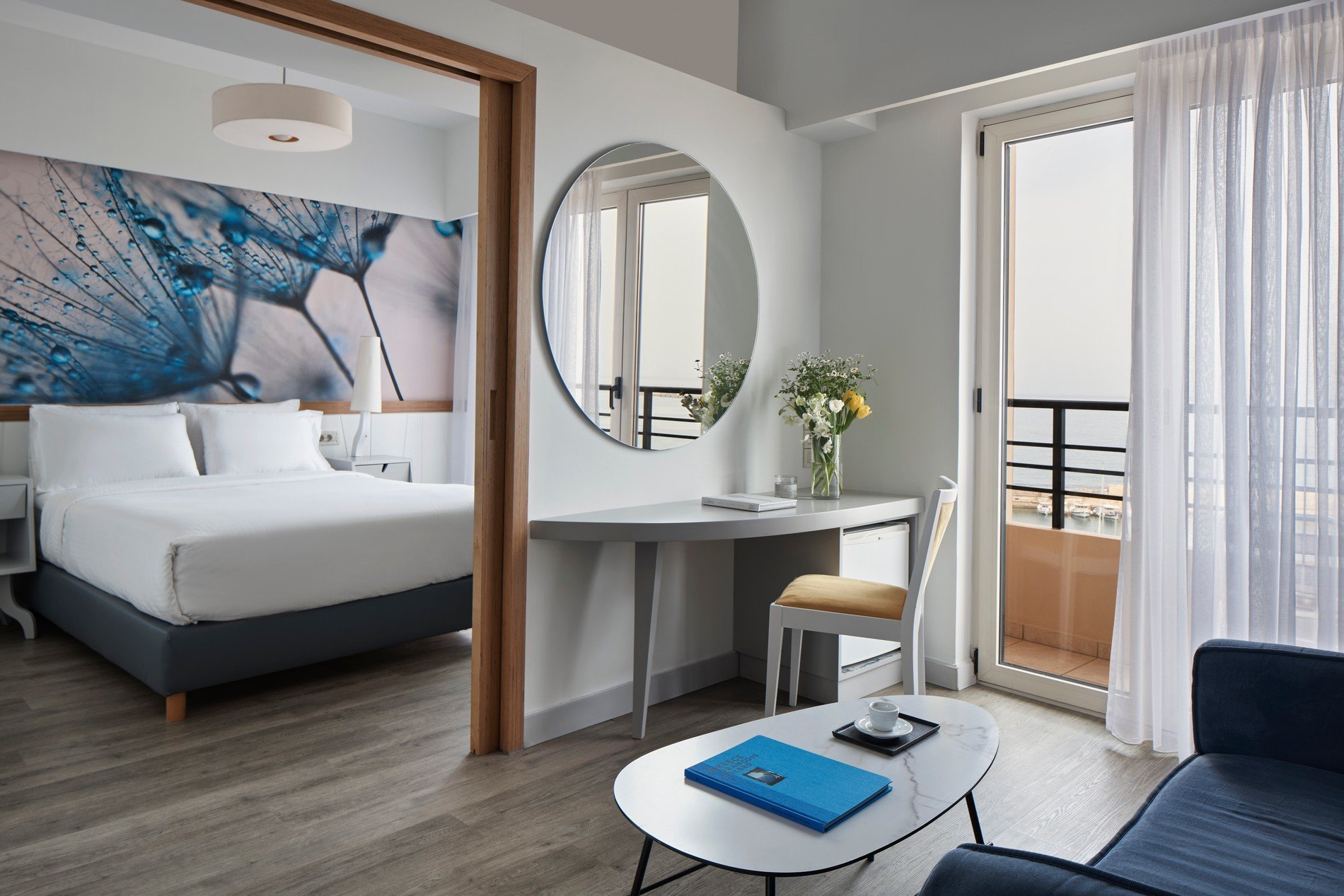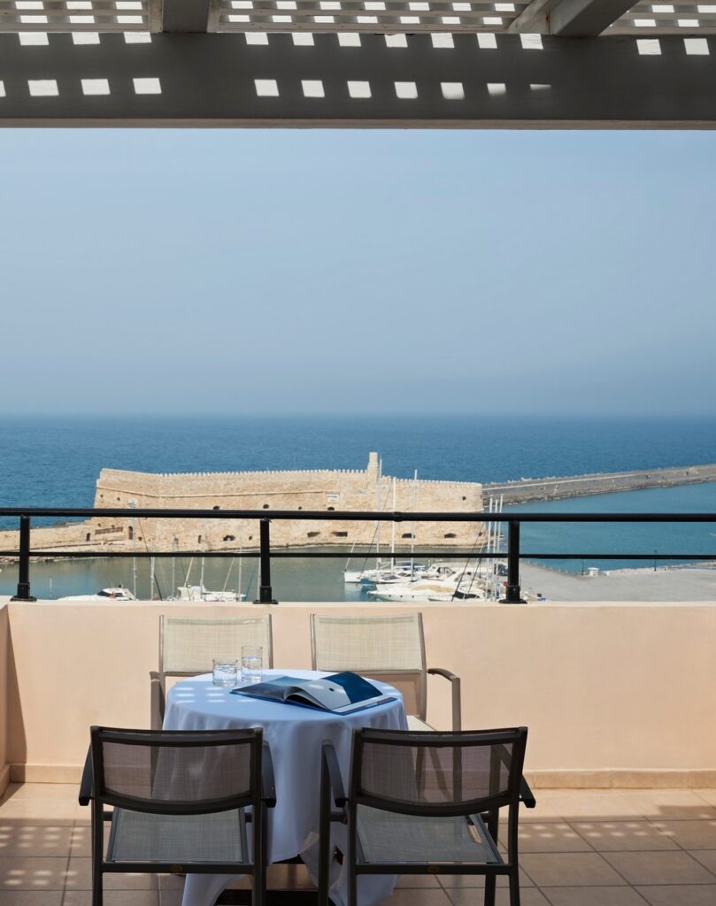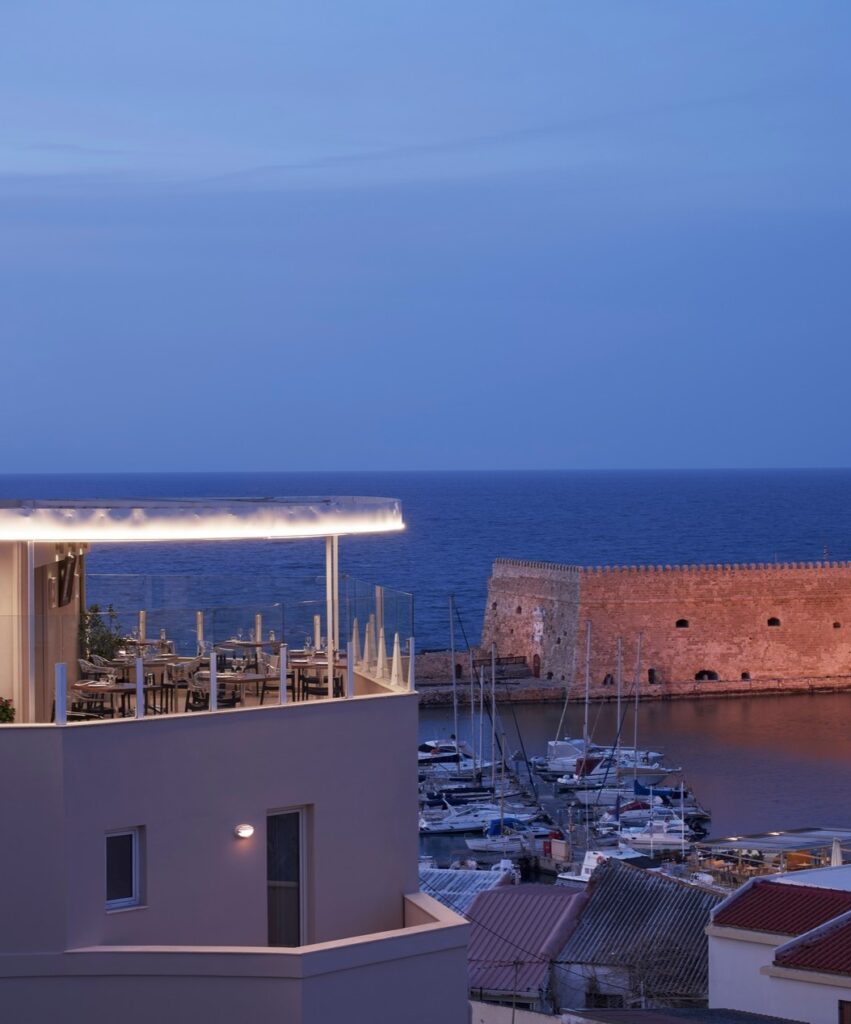 Guests begin their day with a generous Cretan buffet breakfast and end it at the panoramic rooftop restaurant, Herbs Garden. This stylish restaurant, infused Mediterranean cuisine with authentic Greek and Cretan flavors, a feast for the senses.