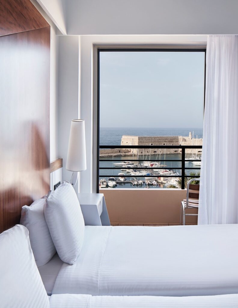 Majestically poised above Heraklion’s old Venetian harbor, Lato Boutique Hotel enjoys one of the city’s most privileged locations. With panoramic views of the sea and the historic fortress. This elegant four-star boutique hotel features 54 rooms and suites, with majestic vistas of the port.  Lato hotel is renowned for its central location, immaculate cleanliness, and highly personalized service.