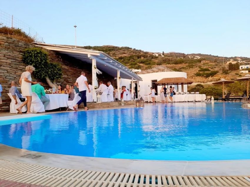 Situated right on the shore, Punta Playa is a beach bar-restaurant that captures the essence of summer on Andros. Charming seaviews, sunsets and soft candlelight set the tone for celebrations that feel warm, natural and down-to-earth. Whether by the poolside or directly on the beach, every reception unfolds with a laid-back boho-chic aura that embraces the spirit of Greek island life.