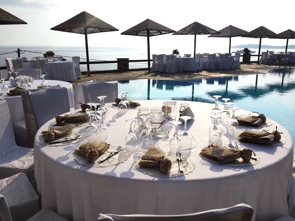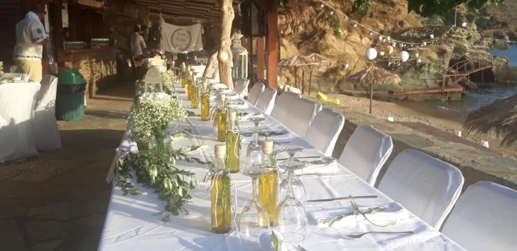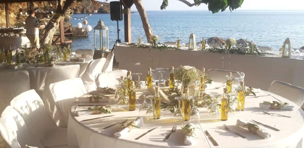 The venue offers flexible layouts for weddings and private events,  from casual seaside dinners to fully styled receptions with decorated tables, lighting and custom details. Couples can host their welcome party, wedding dinner or day-after brunch in one setting, always surrounded by captivating sea views.