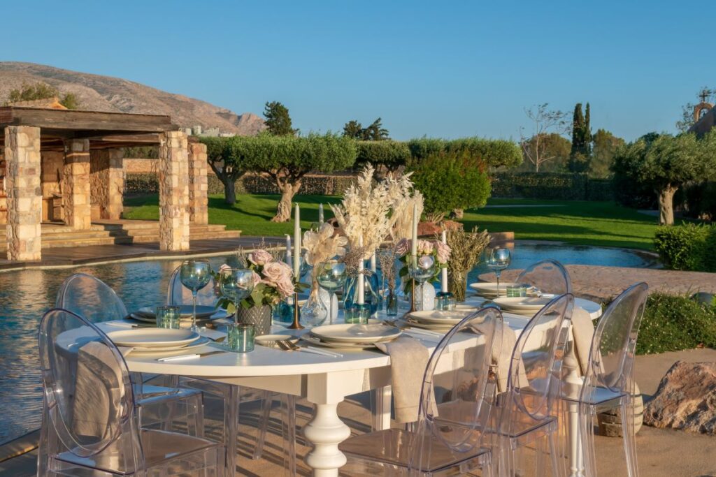 Set on 15 private acres in southern Attica, Pyrgos Melissourgou, is a 350-year-old family estate, unrivalled for its uniqueness and authentic character. Renowned for being one of Greece’s most atmospheric and prestigious venues, no visitor can resist its charm. Surrounded by a mountainous countryside landscape, with ancient olive trees, and uninterrupted views of the Aegean Sea, the estate is simply captivating. The enchanting 17th-century Tower and its grounds comprise a unique setting that takes you to a different era. History, serenity and natural beauty perfectly come together in this truly one-of-a-kind wedding venue.