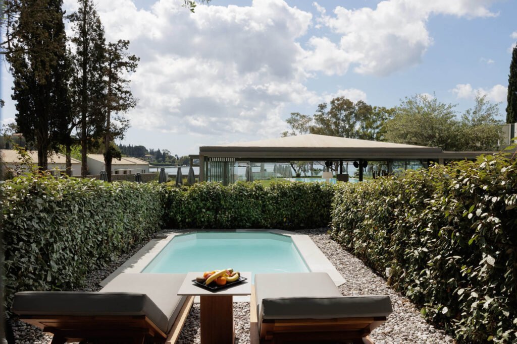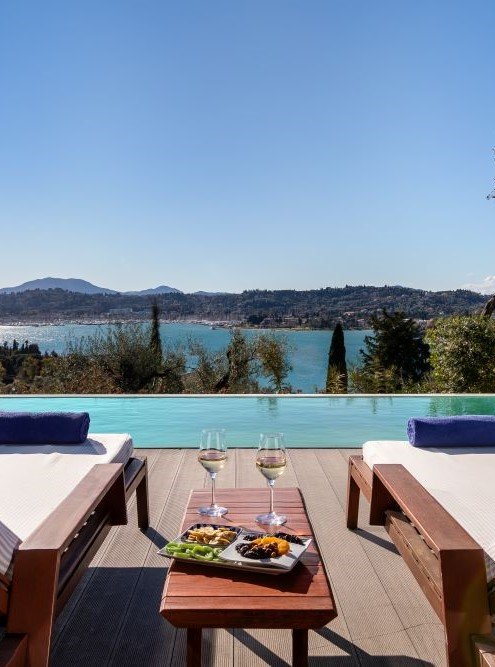 Αmphitheatrically built in the enchanting bay of Kommeno in a 28-acre estate that lies in a unique greenery landscape, just 10 Km from Corfu Town, Rodostamo Adult Friendly Hotel is the new proposal in Corfu’s Luxury Hotels. Blending simple minimalistic lines with contemporary elements, Rodostamo offers upscale accommodation in an array of rooms, suites, bungalows and villas. Rodostamo’s magnificent location, with the unobstructed view to the Ionian Sea and the cosmopolitan Gouvia Marina, as well as its luxurious facilities and its five-star services, make it the ideal choice for luxury weddings and holidays in Corfu.