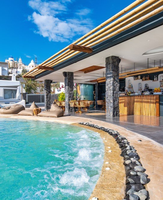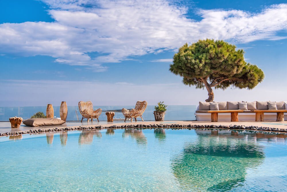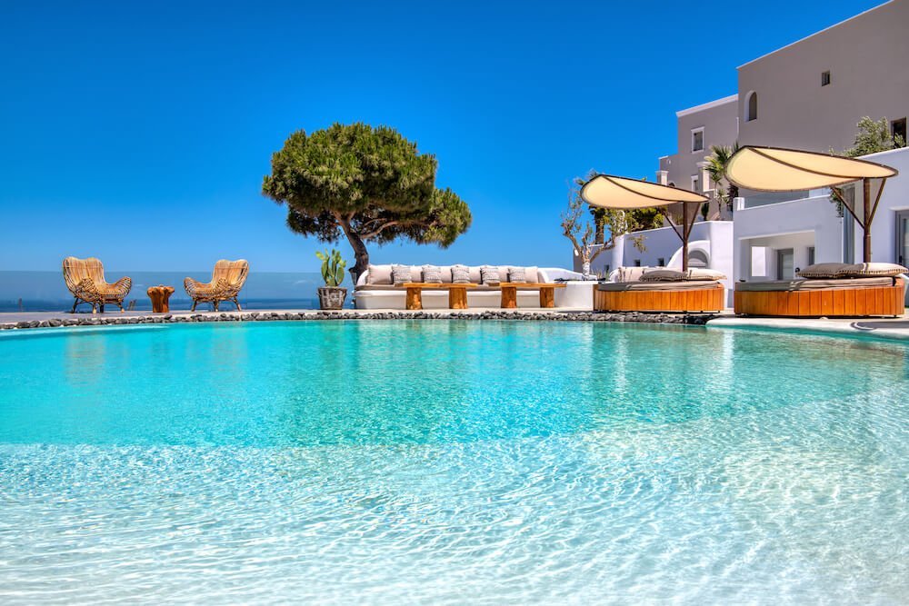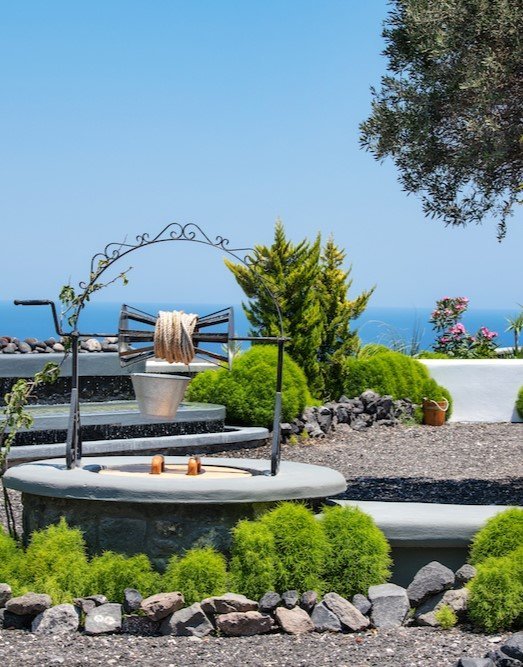 Just a few steps away from Santorini’s capital, in the scenic neighbourhood of Kontochori, stands the unique San Marino luxury suites complex, immersed in a lush, verdant garden designed for tranquillity and relaxing moments. With a vibrant green olive garden, inviting deck chairs and a swimming pool with its romantic little nooks. A stunning sea view unfolds right in front of your eyes and follows you, wherever in San Marino Suites you may be. A member of Calm Collection Santorini, San Marino Suites welcomes you to an unforgettable summer holiday. Here, on a slope filled with colourful, traditional houses and churches, you will find the six luxurious, newly built Suites of San Marino by Calm Collection Santorini. The suites are ideal for couples seeking a romantic getaway, a micro wedding or families looking for a secure and comfortable family retreat, or even international celebrities seeking high-end accommodation that ensures privacy and serenity during their stay in Santorini.
