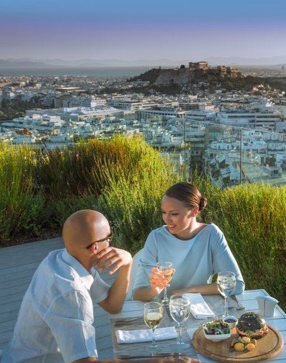 At the St. George Lycabettus Lifestyle Hotel, located in the heart of Athens, guests enjoy exceptional hospitality services complemented by incredible panoramic views from every floor. Recently honored with the Ecopolis Award and the title of Best Rooftop View Hotel at the World Luxury Hotel Awards, the property features 154 stylish guest rooms and 15 suites. Its distinctive lifestyle concept, its central location, luxurious accommodations, elegant ambience, and breathtaking views set it apart as a landmark of Athenian hospitality.
