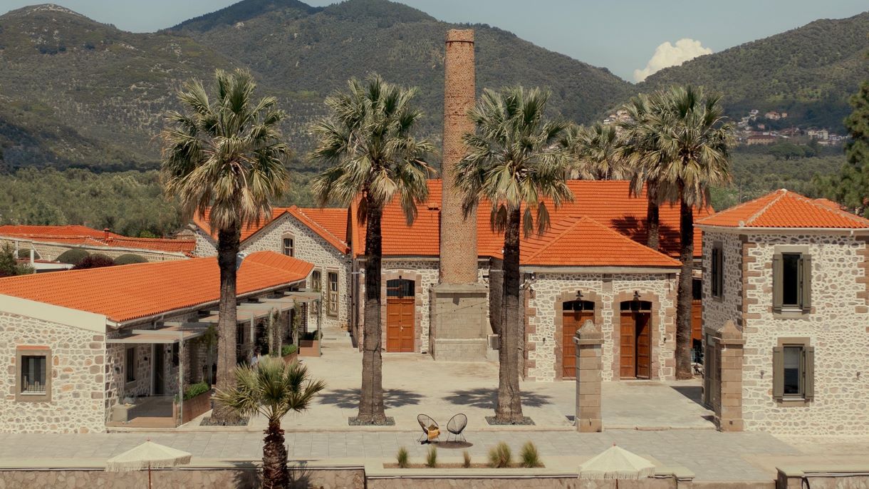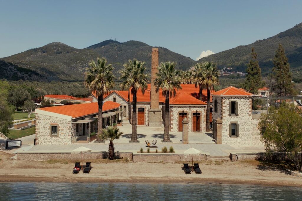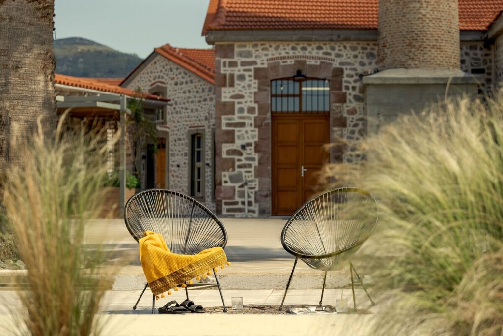 Set along the tranquil seafront of Skala Loutron in Mytilene, Zaira Hotel is a distinctive 4-star retreat that carries an elegance and appeal of another era. Set along the tranquil seafront of Skala Loutron in Mytilene, this 4* hotel was an olive oil mill dating back to the 1940s. The property has been renovated and transformed into a unique retreat, while preserving its stone-built architecture and the striking chimney that dominates the exterior, standing as a nostalgic memory of its heritage.