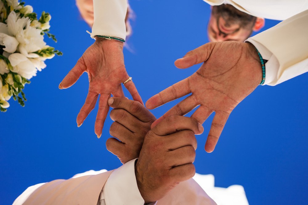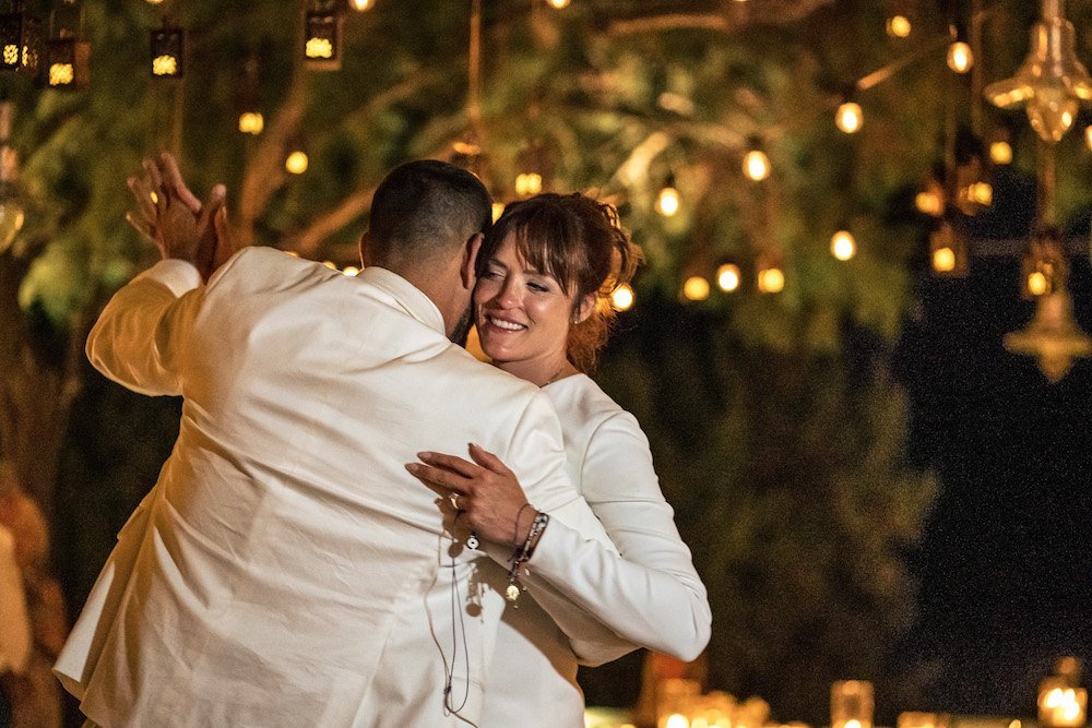 The proposal came during one of their cherished summer escapes to Mani, on the Peloponnese Peninsula, the birthplace of Thanos’ father, a region famous for its authentic, rugged beauty. While swimming in the crystal waters of Gerolimenas, Ania emerged from a dive only to find Thanos holding a small velvet box with a diamond ring sparkling blindly under the Greek noon sun. During that breathtaking moment, she said “yes.” That “magic” spot has since become a family tradition, revisited every summer with their children.