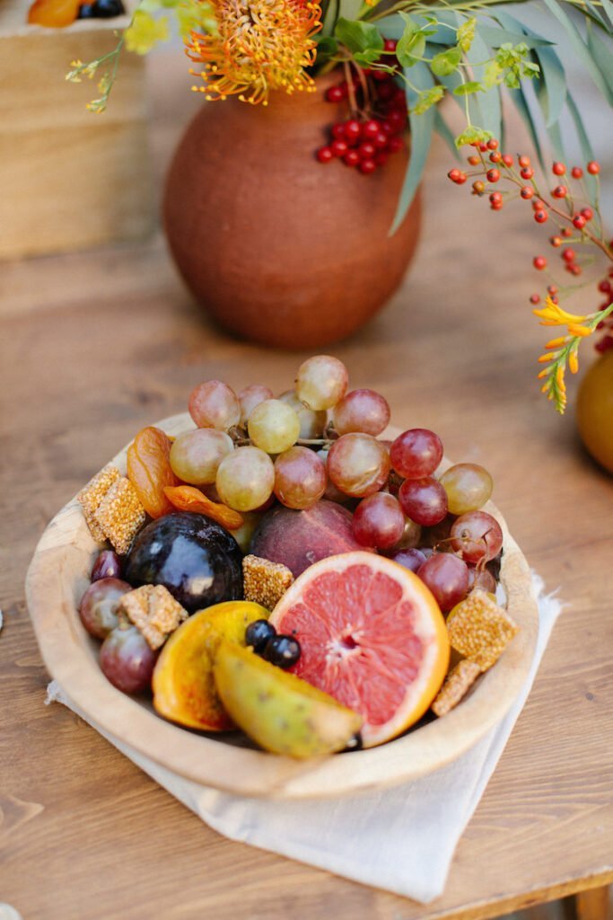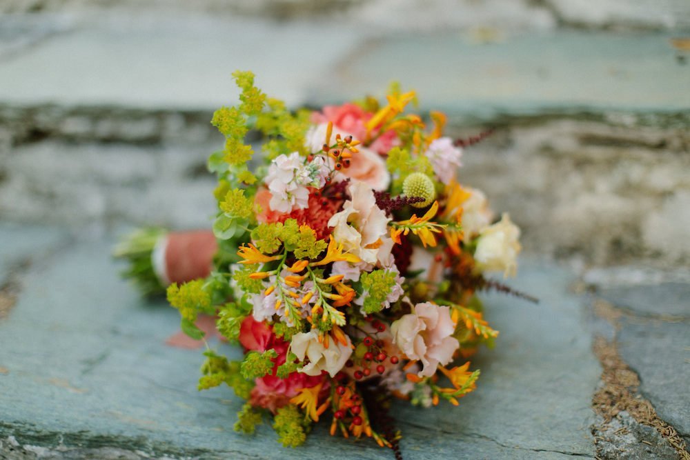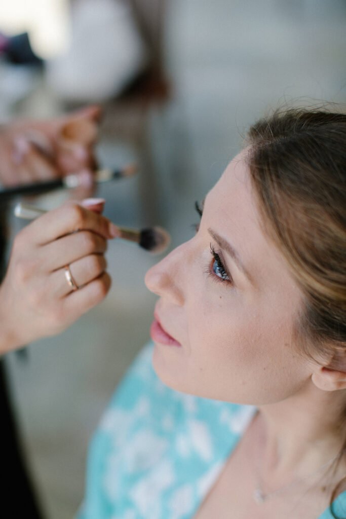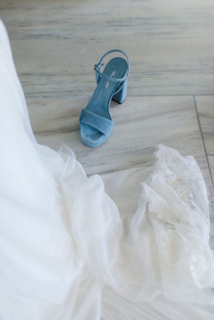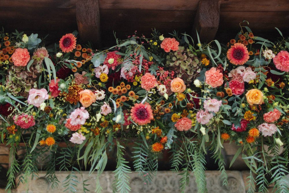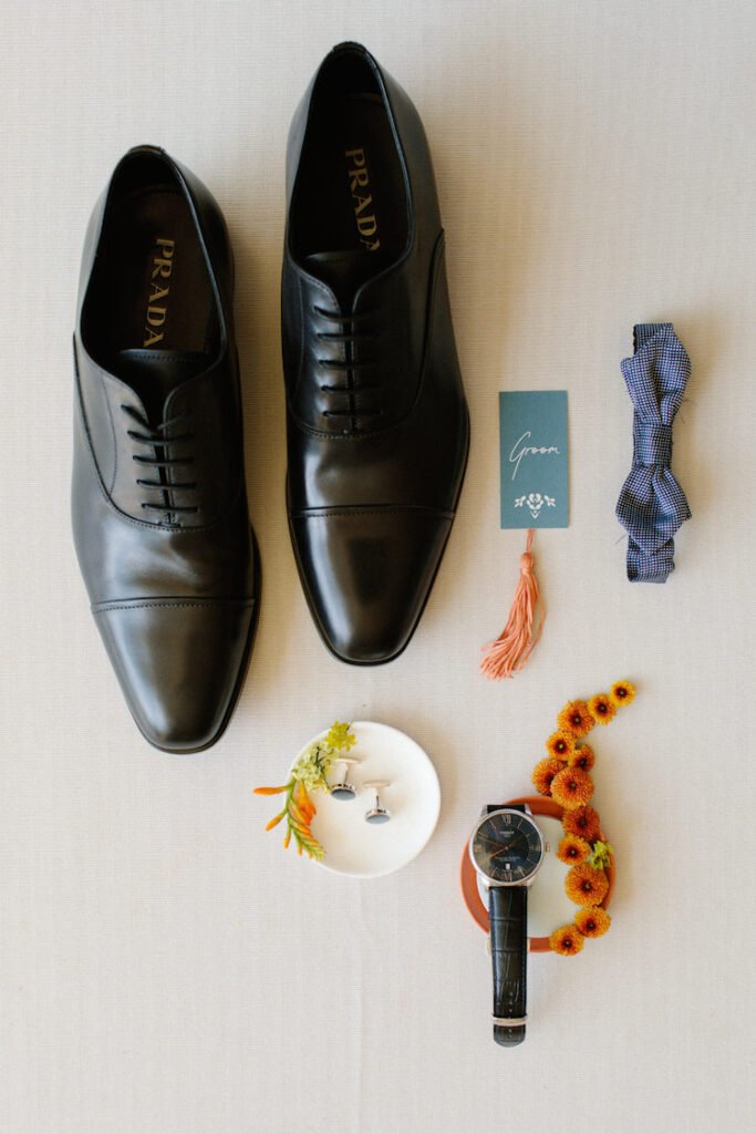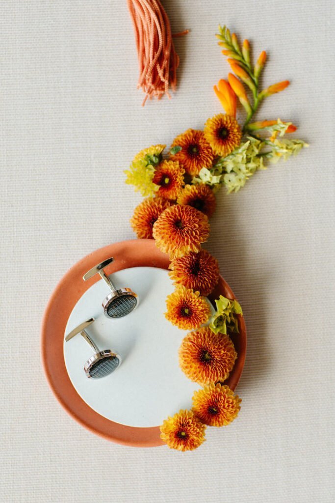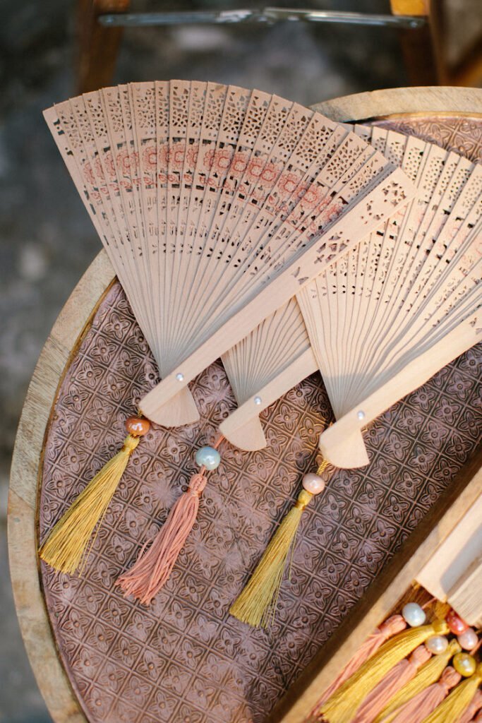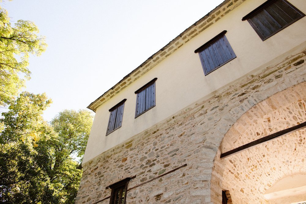 The villages of Portaria, nestled on the mountain slope, are built with traditional Pelion architecture, with stunning views of the thick hillsides and the azure sea. Who wouldn’t want to exchange vows in this natural setting with the sound of crystal-clear waters in the background? The wedding invitations, designed by the couple – from the central design to the color palette – drew inspiration from local architecture. They aimed for a blend of Pelion tradition with contemporaty touches, highlighted by warm terracotta hues reminiscent of Portaria’s courtyards. The ceremony took place at the Church of the Dormition of the Virgin Mary in Makrinitsa. Built in 1767, this church is an outstanding example of stone architecture in Greece. With the guidance of wedding planner Georgia Apostolidou of Pompon Story Events, the floral decorations aligned with the church’s traditional aesthetic. Floral arrangements added a romantic note and vibrant color, while refreshments and fresh fruit awaited the guests.