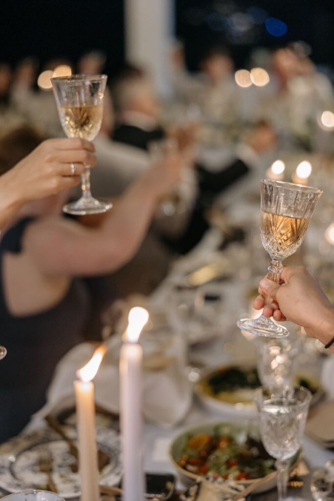 The reception, a true highlight of the day, was held at The White House Restaurant, with breathtaking sea views and a sophisticated dining experience. Evoking a romantic, chic mood designed by Rosmarin Weddings, the event featured a regal setup that beautifully combined elegance and intimacy. Guests dined on gourmet dishes in a welcoming setting.